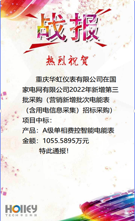 2022年3月4日,在國家電網組織實施的2022年新增第三批招標采購招標中,重慶華虹儀表有限公司再次實現中標。中標金額1055.5895萬元。
