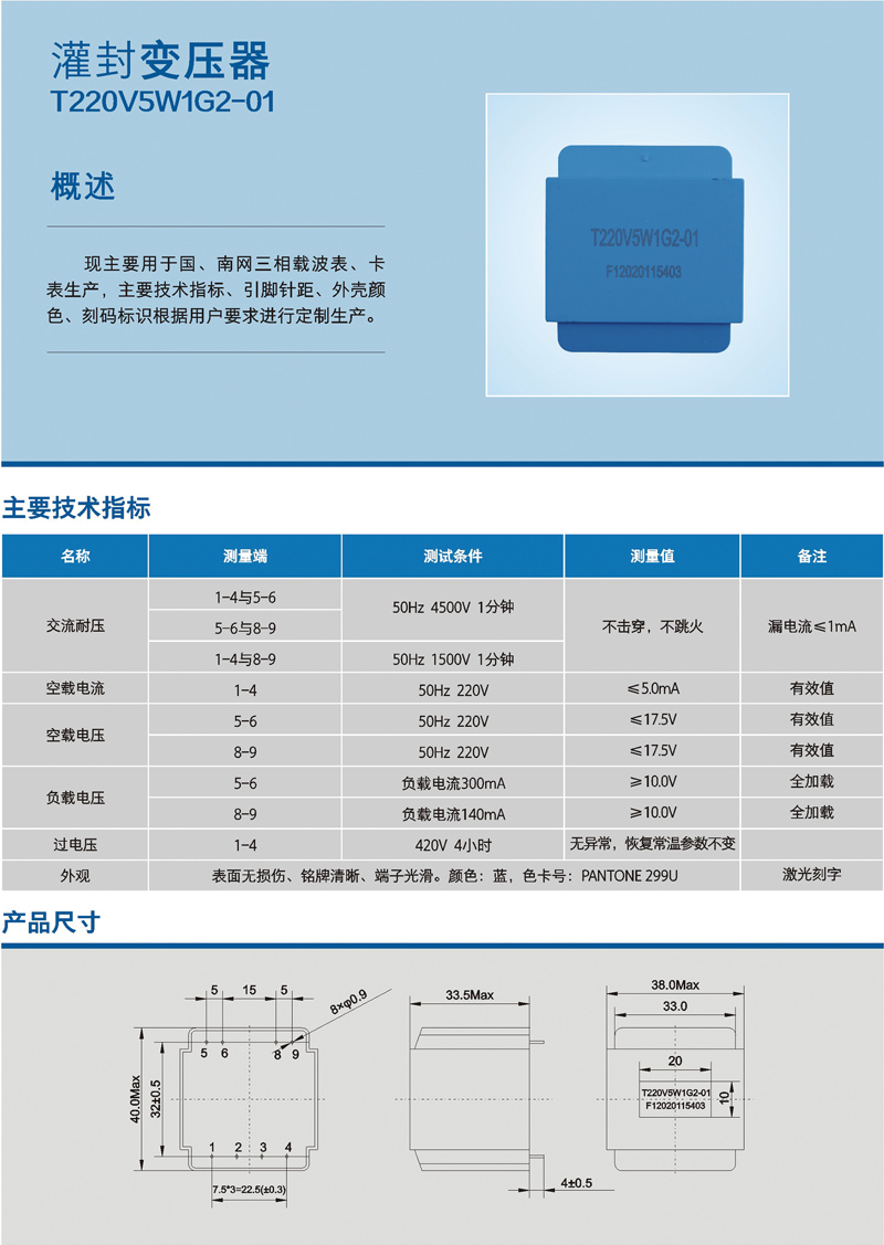 灌封變壓器 T220V5W1G2-01